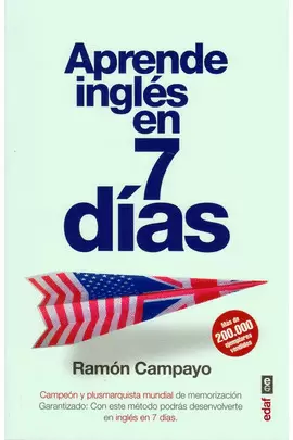 Ramón Campayo, poseedor de numerosos récords mundiales de memorización y autor del éxito de ventas Desarrolla una mente prodigiosa, nos sorprendió anteriormente con un libro para el aprendizaje de idiomas, en el que demostró, con su revolucionario método, cómo el lector era capaz en solo siete días de defenderse en cualquier idioma de un modo eficaz y solvente. Este libro es una adaptación de este método para el aprendizaje rápido del inglés, el idioma hoy día más universal e imprescindible, en sus páginas el lector encontrará todo lo necesario: las tablas de vocabulario, los términos traducidos, la pronunciación figurada y las asociaciones inverosímiles. Los siete días de trabajo y estudio que usted necesita están adaptados de tal modo que no precisará ningún diccionario o curso adicional y, además, incluye toda la gramática necesaria. El autor le garantiza que usted conseguirá desenvolverse desde el primer día en dicho idioma de la forma más rápida y eficaz. La portentosa capacidad mental e imaginación de este campeón del mundo le mostrará nuevas ideas y caminos que le ayudarán a desarrollar su capacidad de aprendizaje, de inventiva y de imaginación.