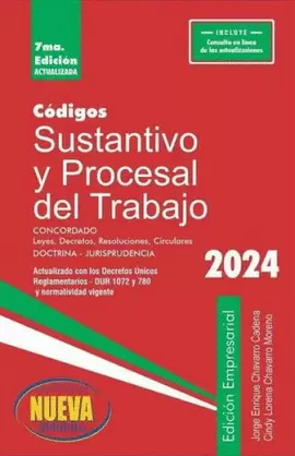 Para el Grupo Editorial Nueva Legislación SAS es grato presentar la séptima edición de los Códigos Sustantivo y Procesal del trabajo, se trata de una edición especial por su organización, estructura y contenido de la misma. Esta es una publicación integral, ya que incluye las concordancias correspondientes en cada uno de los artículos de la obra; tales como: leyes, decretos, resoluciones, doctrina y jurisprudencia