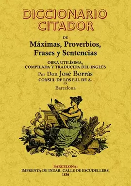 Completa recopilación de máximas escritas por varios autores en inglés y traducidas al español por José Borrás, ordenadas alfabéticamente formando un interesante diccionario.