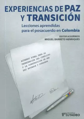 El libro es el producto de la segunda fase del proyecto deinvestigación "Experiencias de paz: lecciones aprendidas para Colombia",desarrollado por el Observatorio de Construcción de Paz de la Universidad deBogotá Jorge Tadeo Lozano, cuyo principal propósito fue identificar enseñanzaspara el momento político que vive Colombia, con base en una metodologíacomparativa. Se buscó indagar cómo Colombia podrá aprender de países que hanvivido procesos análogos de transición de la guerra a la paz, tanto en términosde elementos positivos, potencialmente aplicables en el caso colombiano, comode errores a evitar. Por otro lado, pretendió analizar los acuerdos de pazanteriormente firmados con grupos guerrilleros y paramilitares colombianos, conel ánimo de contrastar los retos políticos, jurídicos y sociales que sevivieron en esos momentos con el presente escenario, así como identificar laslecciones aprendidas de dichos procesos.