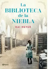 misteriosa biblioteca envuelta en la niebla.