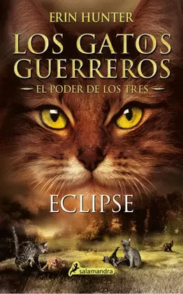 Eclipse, cuarto libro de «Los Gatos Guerreros El Poder de los Tres», ofrece nuevas aventuras, intrigas y emocionantes batallas felinas en el mundo épico de los clanes. Tras su agitada travesía por las montañas, Glayino, Leonino y Carrasquera inician el camino de vuelta a casa. Cada uno anhela en secreto un poder: Leonino sueña con ser imbatible en la batalla, Carrasquera ansía ser una gran líder y Glayino sabe que solo él puede ver el pasado y el futuro. Ya en el campamento, los aprendices perciben una gran inquietud: miembros del Clan del Viento han cruzado la frontera, generando una creciente hostilidad en su territorio. Mientras los guerreros del Clan del Trueno intentan frenar las incursiones, Carrasquera vislumbra un extraño gato de pelaje largo y multicolor, con ojos de color amarillo claro. Dice llamarse Solo y viene a entregarles un mensaje que provocará una crisis de efectos imprevisibles. «El Poder de los Tres» es la tercera saga de «Los Gatos Guerreros», una serie que se ha traducido ya a 36 idiomas, lleva vendidos más de 30 millones de ejemplares en todo el mundo y ha permanecido durante más de dos años en la lista de grandes éxitos de The New York Times.