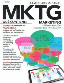 MKTG Marketing, séptima edición, es una solución de 4LTR Press, lo que garantiza el éxito de la actividad "enseñanza-aprendizaje", al ser "Probado por los estudiantes, aprobado por los docentes". Esta solución, conformada por el libro impreso, tarjetas de repaso, CourseMate y el libro Electrónico interactivo; proporciona el conocimiento básico y fundamental de Marketing, ya que presenta las bases que tiene esta disciplina, su enfoque, sus objetivos, las problemáticas que resuelve, el perfil y la visión que deben tener quienes la ejercen y por supuesto, las ramas en las que basa su trabajo; que en conjunto se denomina "Mix de Marketing" (Producto, Plaza, Promoción y Precio). Cada uno de estos elementos tiene destinada una parte del libro para ser abordado. MKTG7, es una solución ideal para enseñar y aprender, "Fundamentos de Marketing", debido a la experiencia de los autores para transmitir sus conocimientos, en combinación con la integración de las tendencias del marketing, el papel de los medios sociales y el estudio de diversos ejemplos reales de empresas que aplicaron alguna estrategia de marketing mediante las cuales lograron sus objetivos.