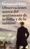 Cuál es el carácter de los juicios estéticos que no parecen limitarse a un sentimiento subjetivo, aunque tampoco se basan en principios racionales que los tornen científicos? IMMANUEL KANT, en OBSERVACIONES ACERCA DEL SENTIMIENTO DE LO BELLO Y DE LO SUBLIME (1764), se interesa no tanto por el contenido cuanto por la lógica de los juicios estéticos. El sentimiento de lo bello surge del libre juego de la imaginación y el entendimiento sin la intervención de ningún concepto, frente a lo que ocurre en la aprehensión espacio-temporal de los objetos. Por el contrario, en el sentimiento de lo sublime el juego se realiza entre la imaginación y la razón. Lejos de expresar una propiedad de objetos, el sentimiento de lo sublime se despierta en nosotros por el contraste de dichos objetos con nuestras ideas, particularmente de carácter moral. También en esta colección: «Antropología » (H 4457), de Kant, e «Indagación filosófica sobre el origen de nuestras ideas acerca de lo sublime y de lo bello» (H 4460), de Edmund Burke.