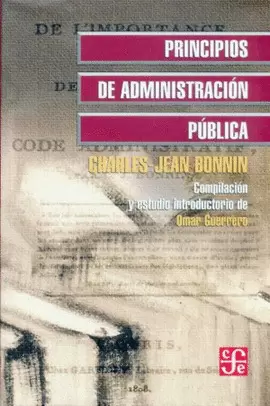 Obra fundacional de la administración pública, el estudio de Charles-Jean Bonnin fue escrito en el contexto de la reforma institucional a que obligó la Revolución francesa. Omar Guerrero, compilador y autor del estudio introductorio, presenta las distintas versiones de los Principios de administración pública: la edición de 1808; la de 1809, junto con el código administrativo que le sirvió de apéndice; la de 1812, en la traducción de 1838 hecha por Esteban Febres Cordero, y la de 1829, de la cual se presenta una selección de la traducción de 1834 publicada en Madrid.