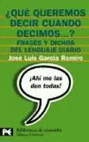 ¿Quién no se ha preguntado alguna vez por el significado exacto o el origen de expresiones como " pasar por las horcas caudinas " , " hacer un brindis al sol " , " a la ocasión la pintan calva " , " pasar una noche toledana " , " hacer novillos " o actuar " por si las moscas " ? Con el apoyo de abundantes fuentes tanto literarias como eruditas, JOSÉ LUIS GARCÍA REMIRO reconstruye en ¿QUÉ QUEREMOS DECIR CUANDO DECIMOS & ? El contexto cultural y la historia, hoy olvidada, desdibujada o deformada, de estas FRASES Y LOCUCIONES DEL LENGUAJE DIARIO que han servido desde tiempos remotos para resumir, en su breve formulación, experiencias y comportamientos humanos o se han aplicado a situaciones variadas y complejas. Satisfacer la curiosidad del lector y el hablante, así como darle seguridad, son los dos objetivos prioritarios de esta obra.