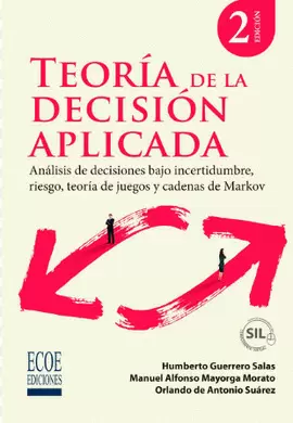n n Teoría de la decisión aplicada n contiene el análisisn de los procesos de toma de decisiones empresariales a la luz de lan investigación de operaciones. Dichos procesos se realizan con una estructuran general bajo los enfoques de decisiones bajo incertidumbre, riesgo, teoría den juegos y cadenas de Markov.n n n n n n n La obra describe pason a paso tanto la descripción como los métodos de solución de problemas donde sen aplican los criterios de teoría de la decisión en las empresas. El texto constan de cinco capítulos: Generalidades, Decisiones Bajo Incertidumbre, Decisionesn Bajo Riesgo, Teoría de Juegos y Cadenas de Markov. El aporte sustancial de estan segunda edición es la incorporación del capítulo de Cadenas de Markov,n conservando, como en todo el texto, las explicaciones y ejemplos paso a paso.n n n n n Dirigido a estudiantes y profesionales de Ingeniería Industrial,n Ingeniería de Sistemas, Ingeniería de Producción, Economía, carreras afines y,n en general, a todas las personas interesadas en modelos de optimización bajon las técnicas en investigación de operaciones como teoría de la decisión.