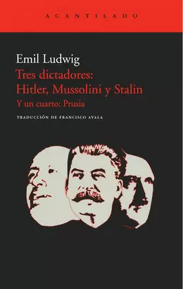 Este singular opúsculo de uno de los más renombrados biógrafos del siglo xx, Emil Ludwig, fue publicado por primera vez en español en 1939, en una traducción preparada por Francisco Ayala en el Buenos Aires en que se había exiliado. Para su trabajo, Ayala se basó en los manuscritos originales del autor, a medida que éste los iba redactando. Hoy recuperamos este libro, en el que el lector se encontrará con la capacidad de análisis de un biógrafo que, ya en fecha temprana, es capaz de estudiar los mecanismos y motivaciones de determinados comportamientos que le son contemporáneos. Ludwig se había entrevistado con Mussolini y con Stalin, y esbozó para ellos sus retratos del natural. No sucedió lo mismo con Hitler, al que describió sin haberlo conocido. Especial interés tiene el último capítulo, en el que Ludwig busca el origen del militarismo alemán en el espíritu prusiano.
