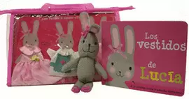 "Los vestidos de Lucía" es un bolso con un cuento, una conejita de peluche, Lucía, y tres vestiditos a medida, de enfermera, princesa y bailarina. Las niñas pueden jugar a vestir la muñeca mientras leen el cuento.